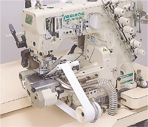 Yamato RS25 Device will be a great help for operators in charge of attaching collars to T-shirts or sweat shirtsAttach collars (or waistbands) in uniform width thanks to the holder which folds them correctly in half. Finish band flatly, which enhances the appearance and the quality of garments.Complete Small Cylinder Bed Overlocker