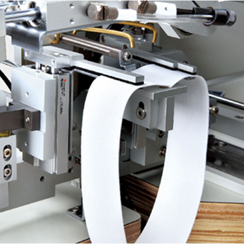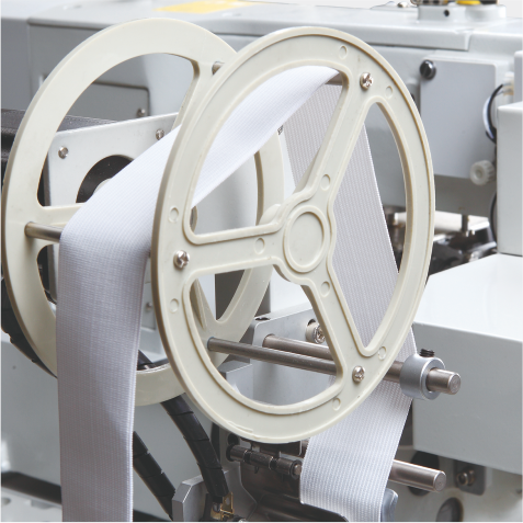 The machine will stop automatically once the elastic ribbon has a joint or is depleted during continuous cycle sewing.