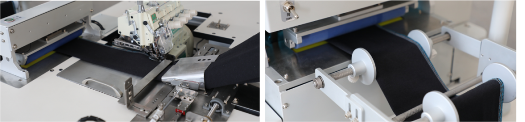 All elastic processing procedurals: auto feeding, cutting, stitching and collecting can be done by